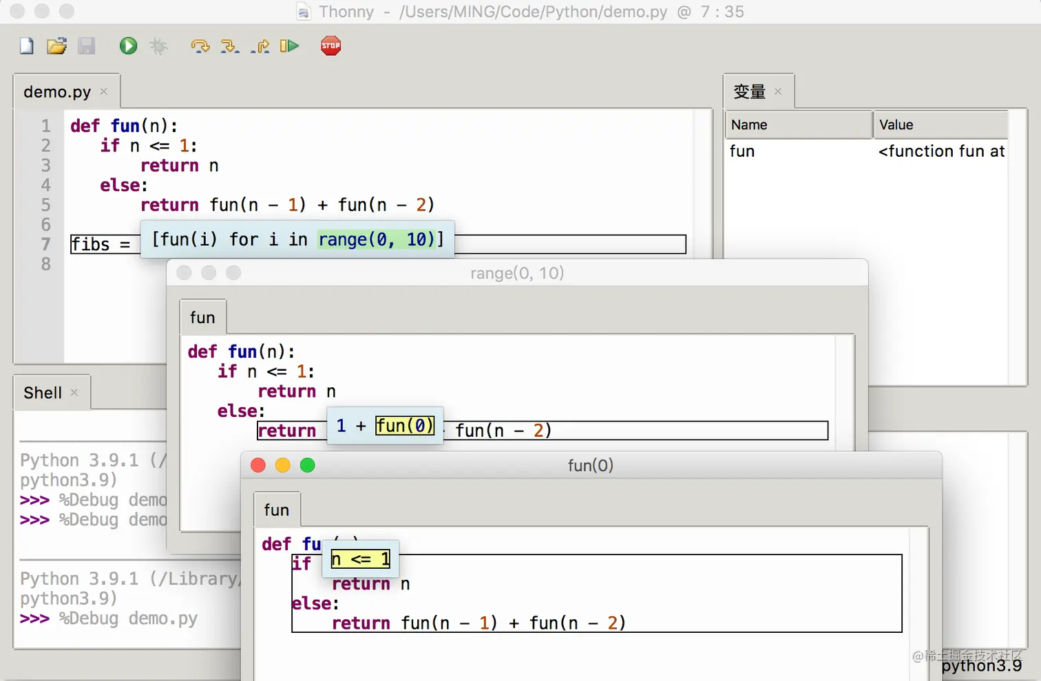 以上如果还不足以让你动心,别急,我来介绍下 Thonny 最让为惊艳的调试功能。