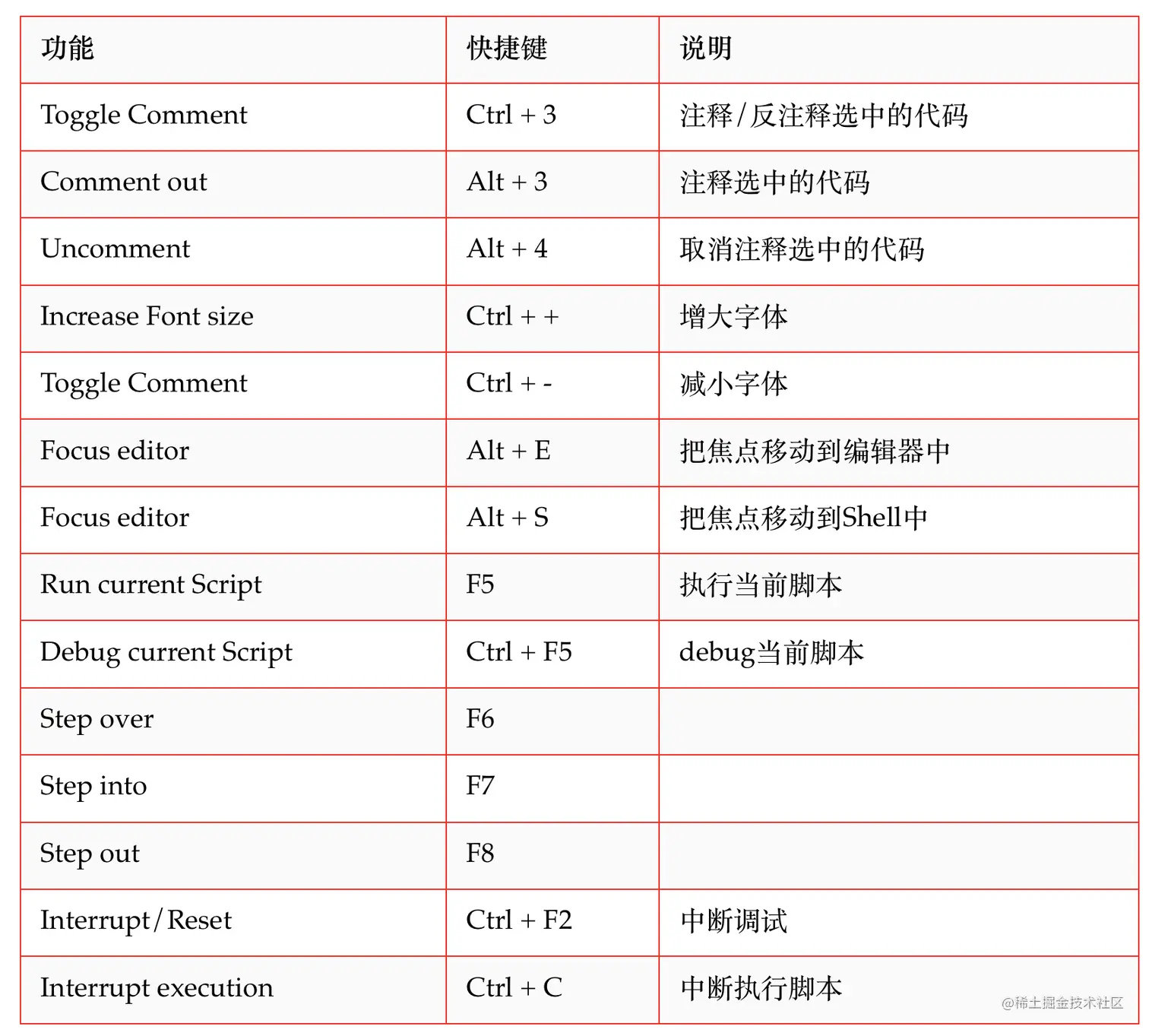 8. 快捷键一览表