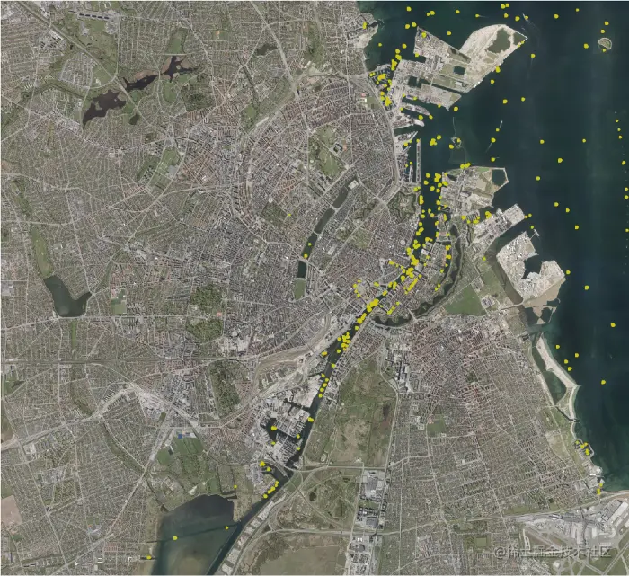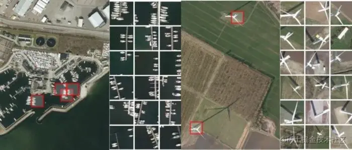 因此,在与哥本哈根市的合作中,我们朝着一种工具迈进了一步,该工具可以用于匹配所需的物体类型,而不需要预先创建训练数据。该工具基于之前的一个项目背后的技术。这个在线演示可以让你点击丹麦航拍图像数据集上的一个地方,并查看丹麦的100个看起来最相似的地方。相似度度量是基于一个训练有素的神经网络来区分不同的物体类型。例如,点击游艇码头或风力涡轮机将会产生以下结果:
