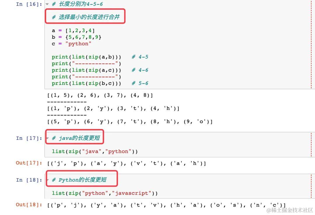 上面的多个元素的长度都是相同的,下面的例子来展示 zip处理不同长度的序列。