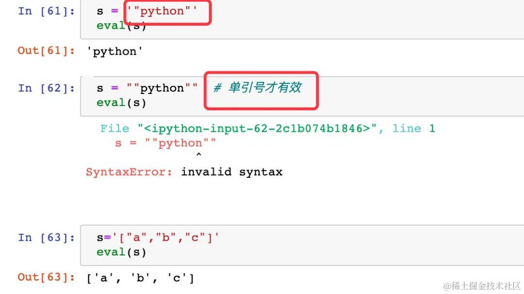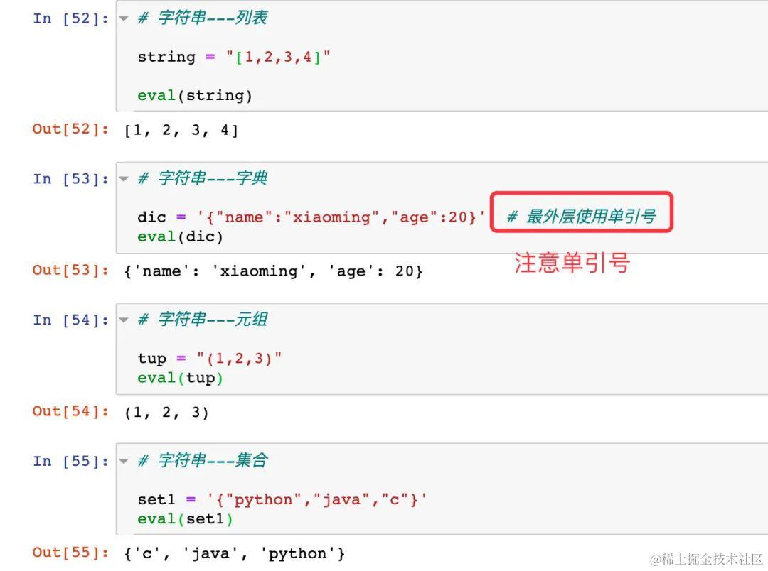 eval 直接返回传入字符串的表达式的结果,语法为: