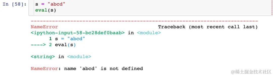 # eval先将‘s’的引号剥去,得到s.不可以进行计算,开始查找s是否是一个变量的名字,查找到s是一个字符串,所以程序输出了s中的内容