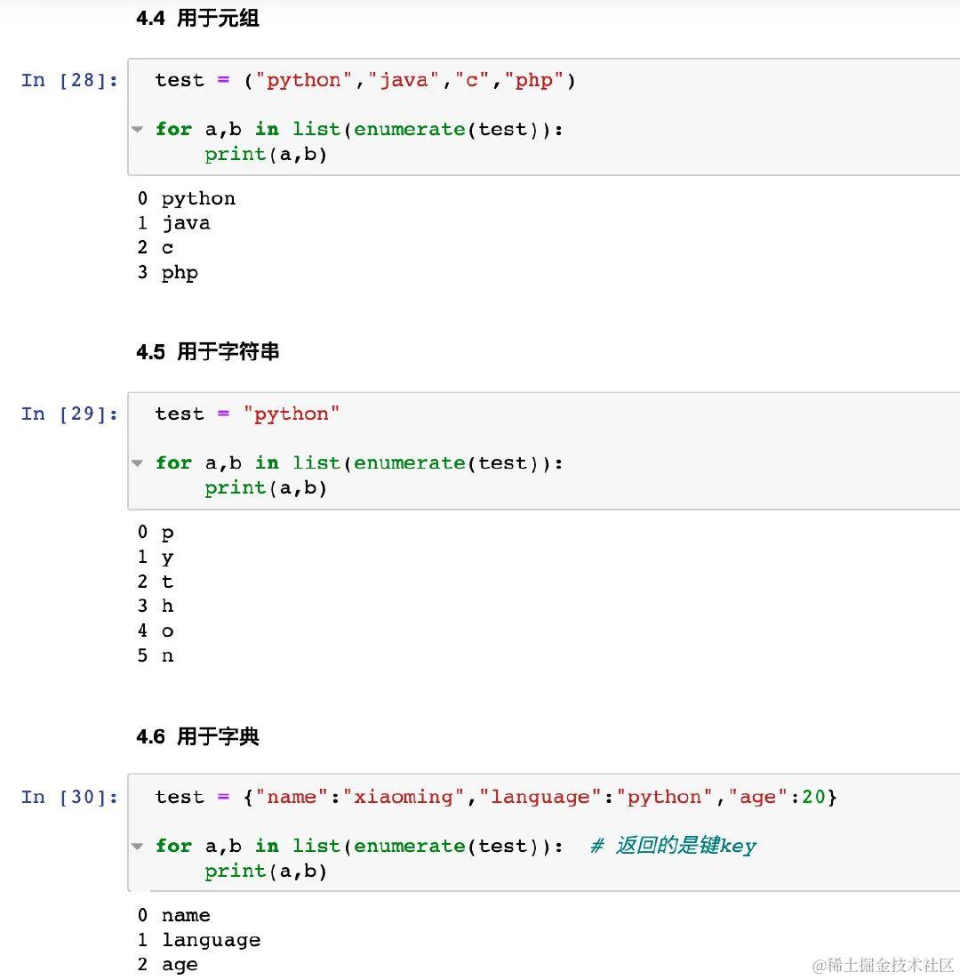 enumerate是 Python的一个重要内置函数,返回的是可迭代序列的元素和下标,对列表、集合、字典、字符串等都适用的。