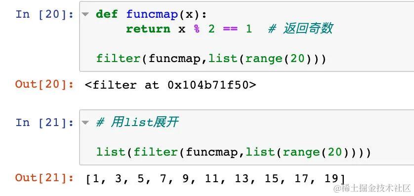 返回的是 filter对象。如果想看具体的数据,需要使用 list来展开。
