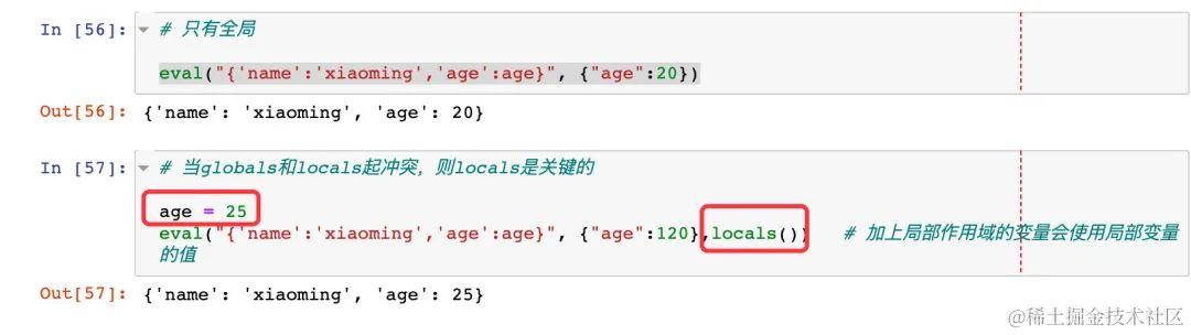 - locals :变量作用域,局部命名空间;如果被提供,可以是任何映射对象