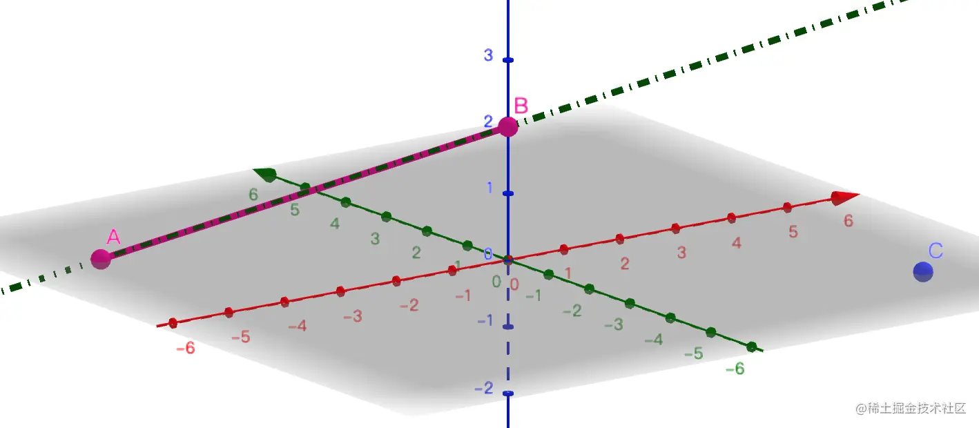 所以,点 C 到线段 AB 的最近点,是点 B。计算过程与射线最近点是一样的,只是射线方向的归一化可以只做一次,因为 AB 和 BA 方向相反。