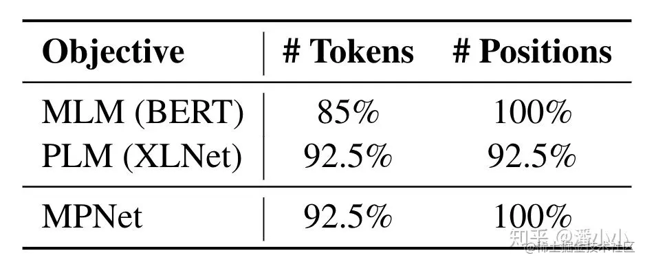 - 「XLNet」 : Permuted Language Model , 保留了masked token之间的依赖关系,但是预测的时候每个token只能看到permuted sequence中的前置位的token的信息,不能看到所有token的信息。(p.s. 不知道XLNet的宝宝辛苦去复习 【论文串讲】从GPT和BERT到XLNet )