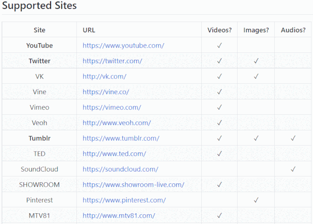 youtube-dl 需要 2.6、2.7 或 3.2+ 版本的 Python 解释器,并且它不是特定于平台的。它应该可以在您的 Unix 机器,Windows 或 macOS 上运行。