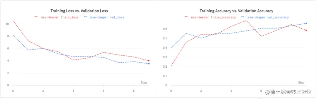 使用了MSE的损失,我们可以看到验证精度大幅下降到~56%。同样的损失也出现了类似的情况,这表明需要进行正则化。
