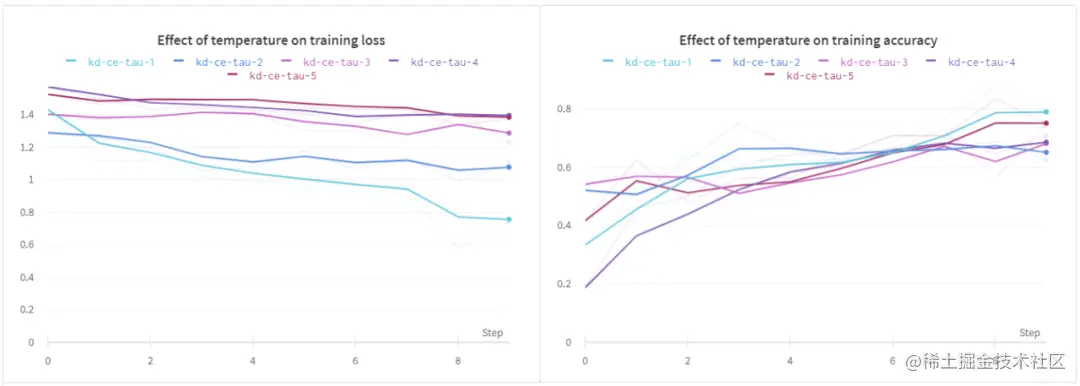 Hinton等人建议使用更高的温度值来soften教师模型预测的分布,这样软标签可以为学生模型提供更多的信息。这在处理小型数据集时特别有用。对于更大的数据集,信息可以通过训练样本的数量来获得。