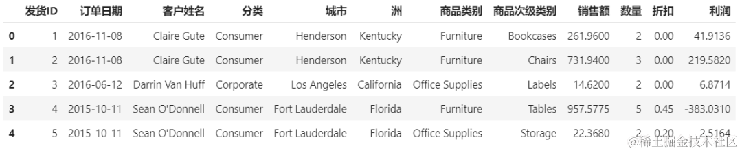 该表为用户订单数据,有订单日期、商品类别、价格、利润等维度。