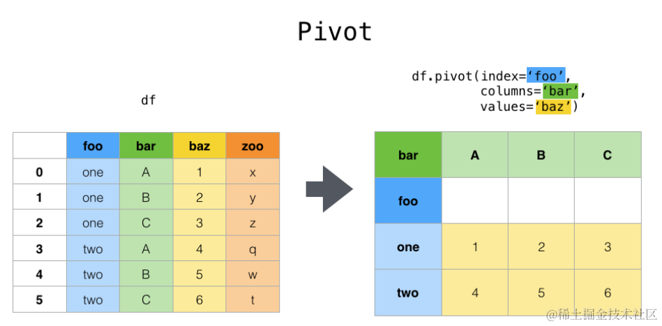 - index:行分组键,一般是用于分组的列名或其他分组键,作为结果DataFrame的行索引