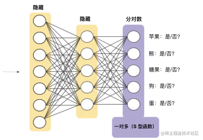 我们可以借助深度神经网络(在该网络中,每个输出节点表示一个不同的类别)创建明显更加高效的一对多模型。图9展示了这种方法: