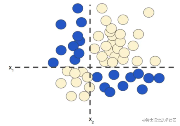对于非线性分类问题(如图1所示),“非线性”意味着你无法使用形式为: