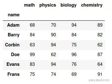 之后,使用以下代码为物理、生物学和化学考试成绩创建了更多模拟数据。