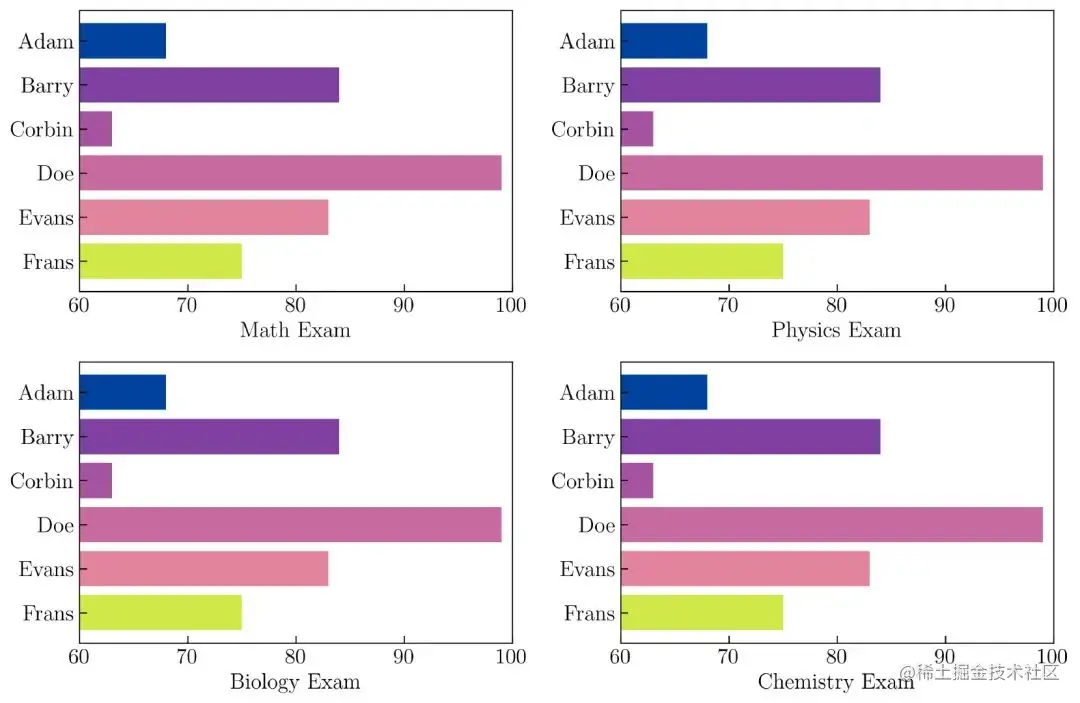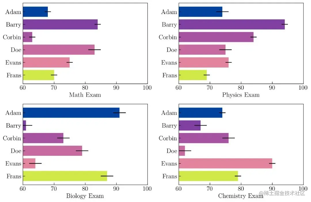 想以水平条形图和各种颜色呈现 图40,以下是生成它的完整代码: