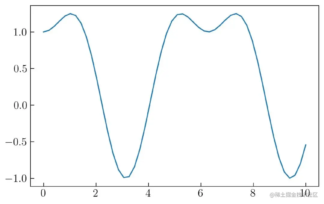 上面可以看到轴内部的 x 轴和 y 轴的刻度方向,并且使用的字体为 LaTeX 格式。如果要更改图形尺寸,可以在 plt.figure() 中添加图形尺寸参数