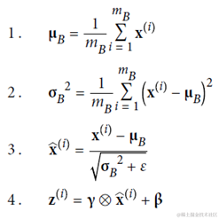 为了使输入零中心并归一化,该算法需要估计每个输入的均值和标准差。通过评估当前小批次上的输入的平均值和标准偏差(因此称为“批量归一化”)来做到这一点。公式11-3逐步总结了整个操作。