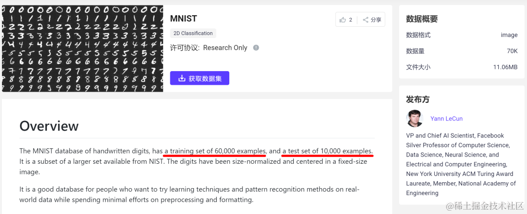 ▲MNIST,含60,000个手写数字样本的训练集和10,000个样本的测试集
