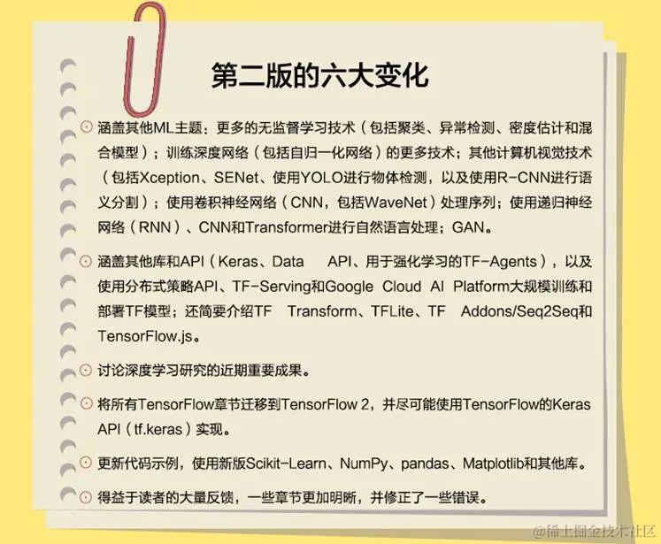 需要。第二版基于最新的TensorFlow 2和新版Scikit-Learn全面升级,内容增加近一倍。 作者对书中的代码和习题也进行了全面更新,帮你更快进阶,掌握业界最新研究成果。