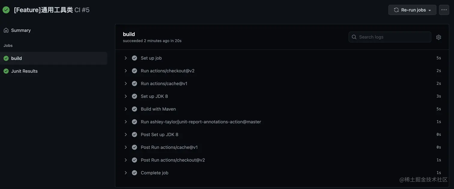 点进本次commit执行的记录,可以看到,action顺利完成了几个步骤: