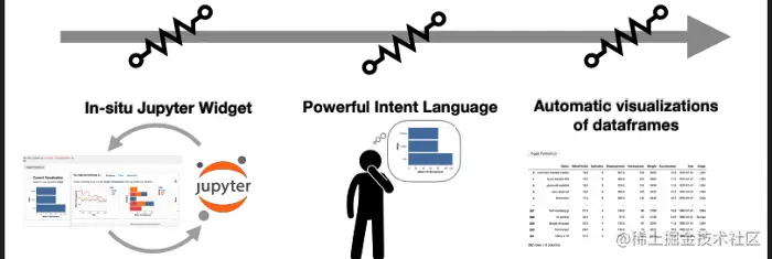 - Lux将交互式可视化的功能直接集成进了Jupyter notebooks,以弥合代码与交互式界面之间的鸿沟。