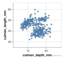 我们可以看到企鹅鳍的长度与体重呈正相关。 企鹅嘴峰(culmen)的长度和深度也显现出一些有趣的模式,它们显然存在着某种负相关。 具体来说,“嘴峰”就是鸟类的上脊。