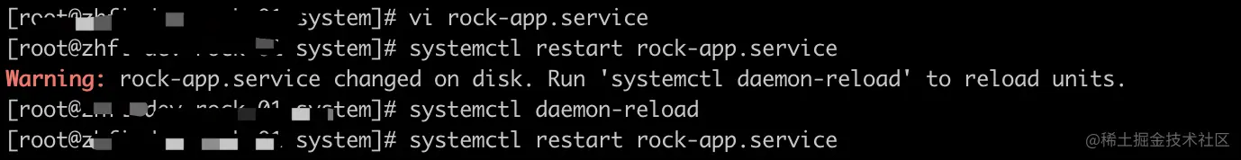 如果我们后续有修改到rock-app.service这个配置,需要先执行一个命令: