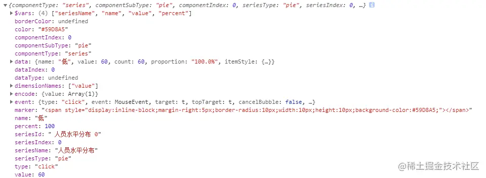 在可视化项目开发过程中,经常会遇到这样的需求:点击饼图的版块,跳转到对应的详细数据页面。因为对于我来说是一个新的需求,所以我需要去查看一下官网的API。
