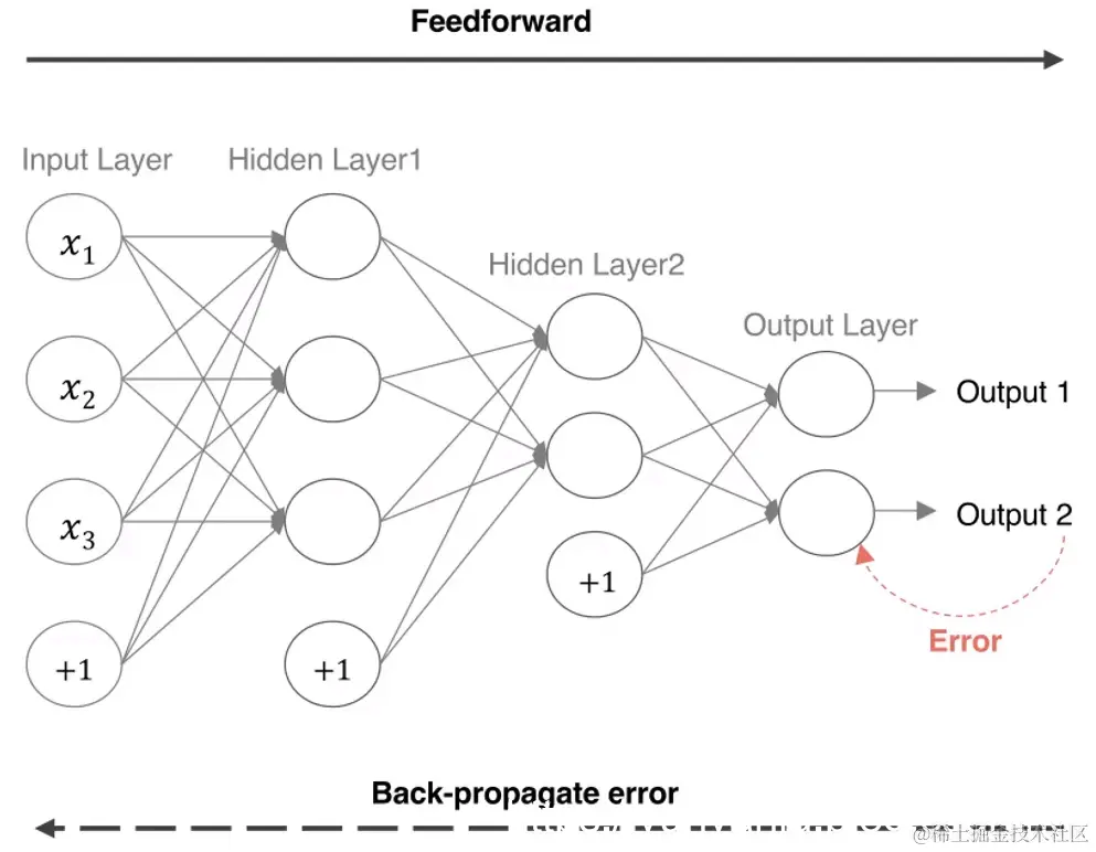 反向传播(Backpropagation)算法,深度学习模型采用梯度下降和误差反向传播进行模型参数更新。