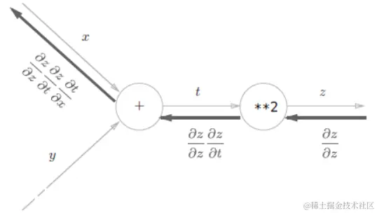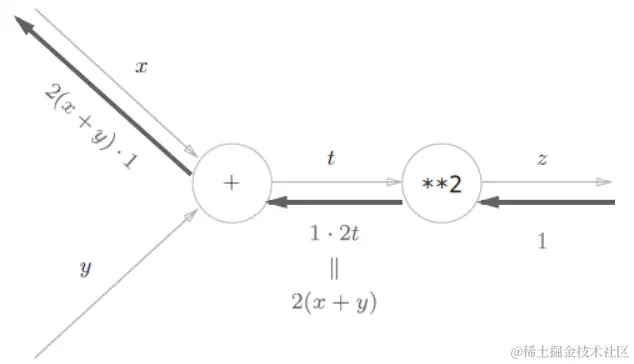(1)、根据计算图的反向传播的结果,dz/dx = 2(x + y)