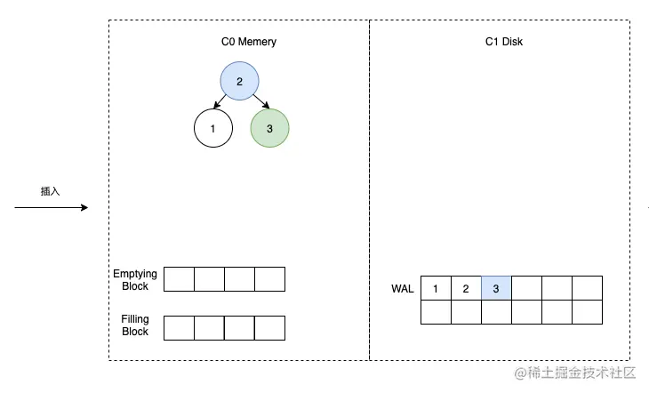 插入数据 3,C0 以 B 树的形式存储(用其他数据结构也可以)