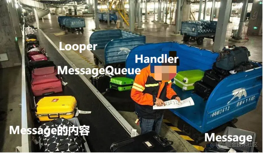 看电视剧的时候突然有感而发。可以把Handler机制,和机场传送带结合起来(我这个传送带比较高级,有行李的时候就转动,没有行李的时候就待机)。