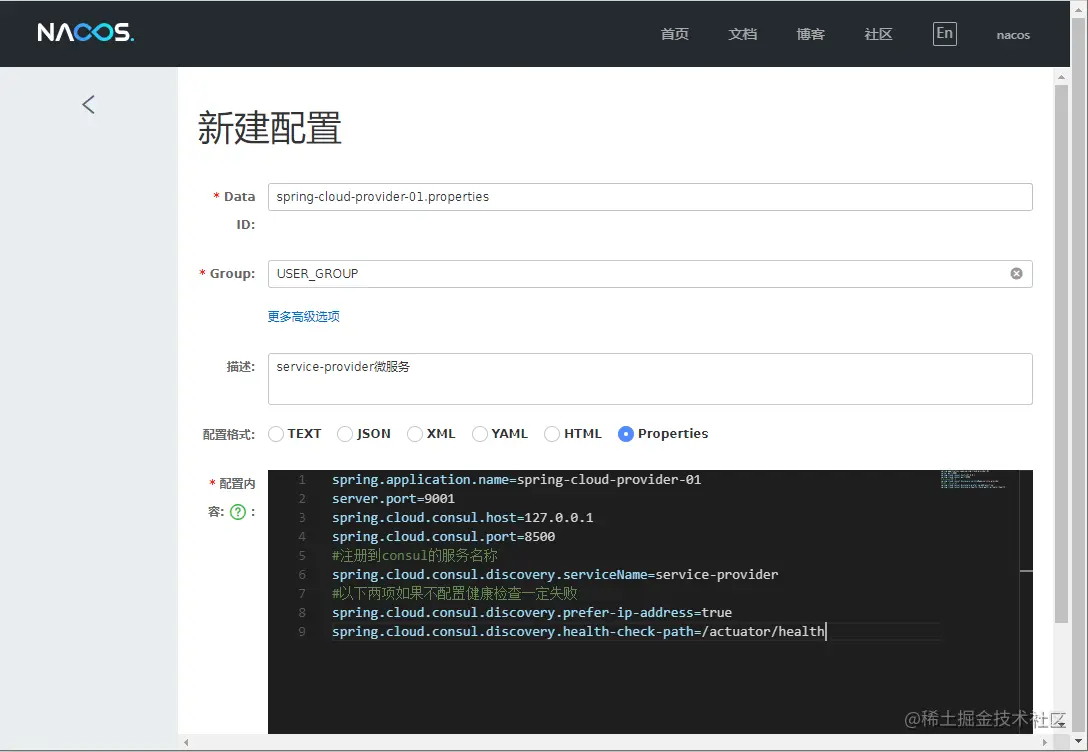 @NacosPropertySource(dataId="spring-cloud-provider-01.properties", autoRefreshed = true, groupId = "USER_GROUP") 这里要和3.2 的内容匹配起来