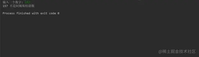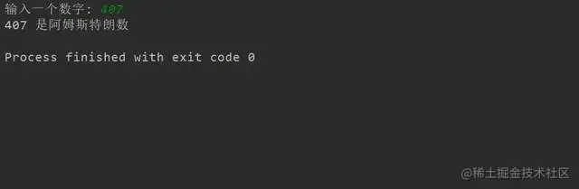 最后,将总和与原始数字进行比较,得出结论,如果相等,则是阿姆斯特朗数。