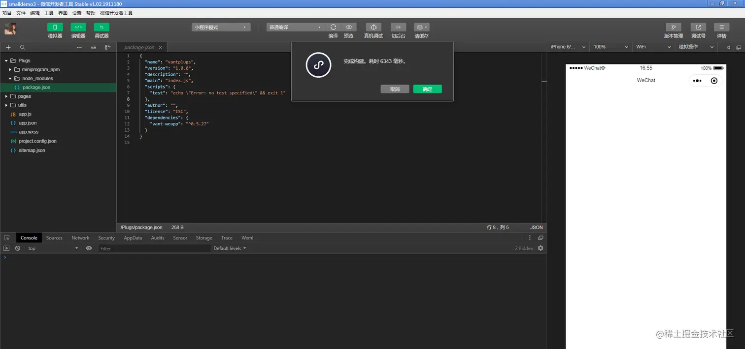构建成功后,会在文件夹多一个miniprogram_npm文件夹。如下图所示: