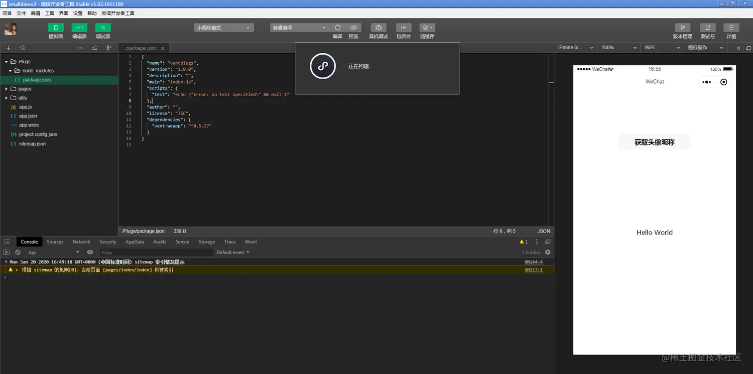 微信开发者工具版本:v1.02.1911180