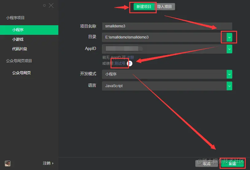 创建小程序