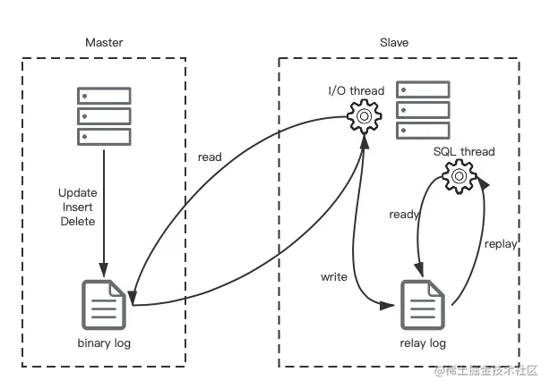 - 从库(Slave)的 SQL Thread 会读取 Relay Log,将更新内容写到数据库中。