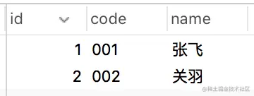 我们看到执行结果中两条数据的id不同,第一条数据是1,第二条数据是2。