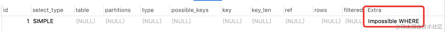 表示WHERE后面的条件一直都是false,