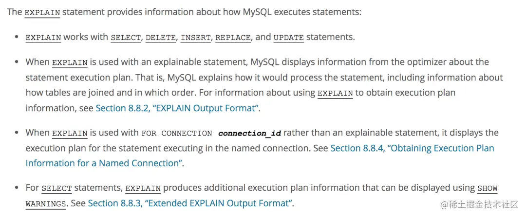 先看看mysql的官方文档是怎么描述explain的: