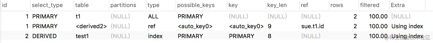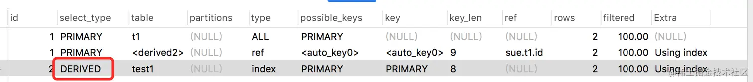 - DERIVED 执行sql如下: