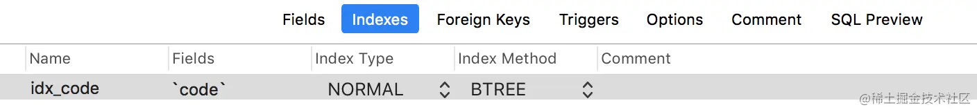 并且code字段上面建了一个普通索引: