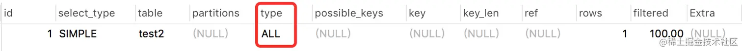 - ALL 全表扫描。执行sql如下: