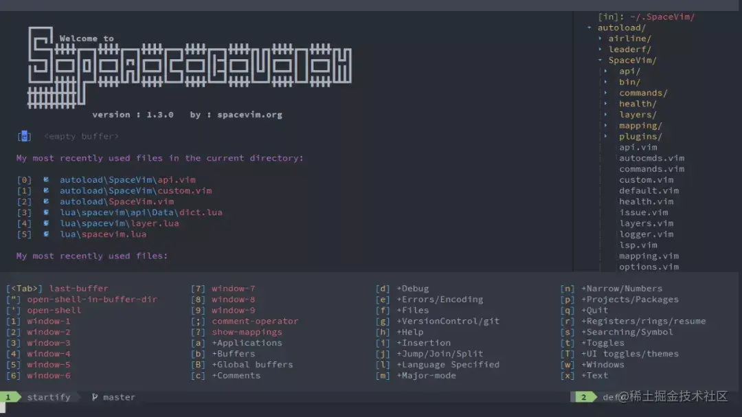 我个人的理解,SpaveVim其实是vim的配置集合,需要配合vim或者neovim使用(官方推荐neovim)。用户选择自己需要的模块进行加载配置,就能配置出一个适合自己的开发环境。