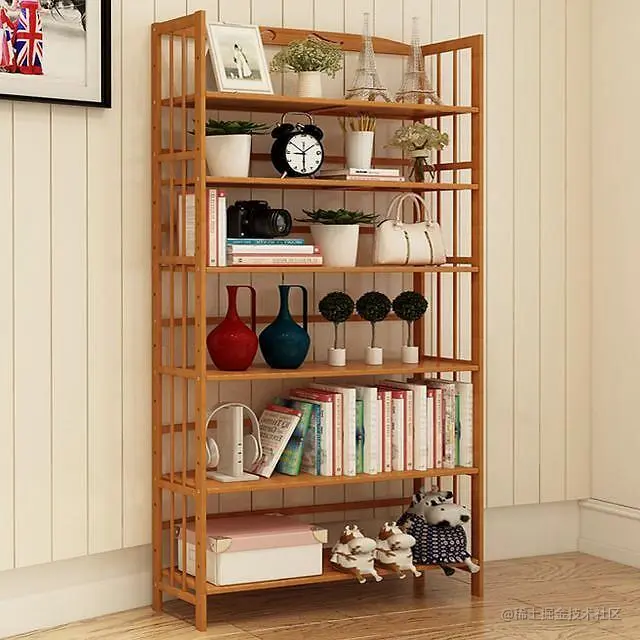 而我们示例中的书架与书之间的关系就没有那么强,它们之间是聚合关系。书架即使不放书,也可以放其它东西,比如像下图中的书架放上了装饰物。