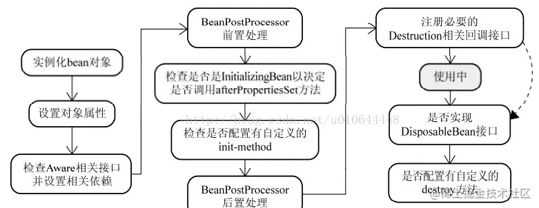 如果要说setter方式注入的话,我们最好先看一张Spring中Bean实例化的图