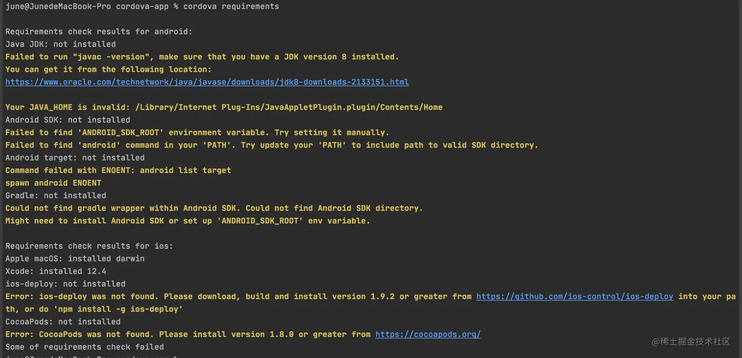 cordova requirements //查看环境是否完整