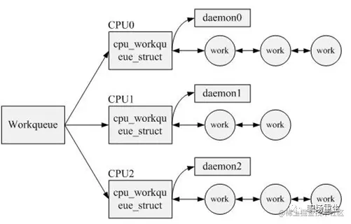 workqueue :工作的集合。workqueue 和 work 是一对多的关系。